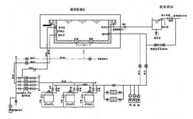 循環(huán)給水管路:因泳池進(jìn)水為10個(gè)可調(diào)式布水器,布水均勻,流速低。循環(huán)給水流速可定為:2.5m/s。因此循環(huán)給水主管路為:DN80。