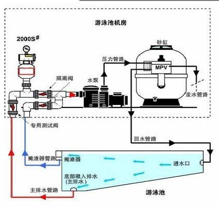 現(xiàn)在的游泳池為了節(jié)約水和使用自來(lái)水造成的高額費(fèi)用,游泳池都需要使用游泳池循環(huán)水處理設(shè)備對(duì)池水進(jìn)行過(guò)濾凈化消毒,然后循環(huán)利用。其中過(guò)濾凈化消毒的目的是保證池水的潔凈衛(wèi)生和安全。