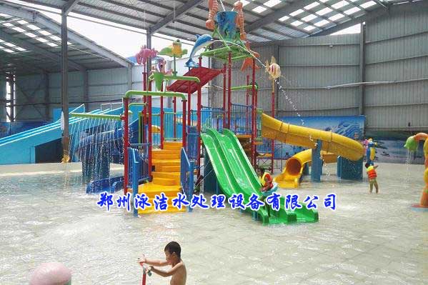 泳惠水上樂園地處風景秀麗的古城浚縣縣城城東北部6公里處的黎陽雙廟村,鄭州泳潔水處理設備有限公司于2017年4月承建浚縣泳惠室內水上樂園,歷時3個月投入使用,總面積2500多平方,總體投資130多萬。此項目包含的設備有:游泳池水處理設備、人工造浪設備、水上樂園設備、兒童戲水設備都由鄭州泳潔水處理設備有限公司提供設計及安裝。項目共分三個泳池:造浪池、游泳池,兒童池、泳池面積800多平方。兒童池水位有0.5米、游泳池和海浪池都有淺水區和深水區,淺水區水位1.2米、深水區1.7米,人工造浪設備采用鼓風造浪,浪高可達1.3米,水處理循環過濾設備及配件管道均采用國內知名品牌。泳惠水上樂園水上游樂項目及水處理設備全部由鄭州泳潔水處理設備有限公司承建。