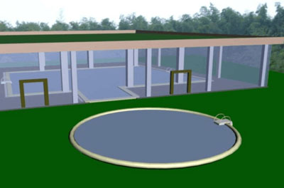方案三:將成人池與兒童池徹底隔開,采用無機房過濾設備,成人池與兒童池分別安裝過濾設備,互不干擾,根本上解決冬季加熱問題。如圖: