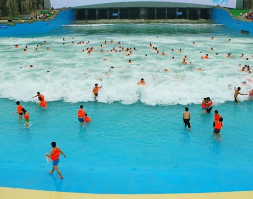 真空造浪又稱海嘯造浪,使力傳感系統進行采集真空,以瞬間控制真空筏門開啟進行造浪。可以造1.5米的連續浪和最高3米的巨浪,真空造浪池的面積一般在5000~20000平方米之間,可以一次容納幾千人,突然一個一個巨浪撲面而來,瘋狂壯觀的場面令人屏息,甚至連旁觀者都感受到那份刺激。