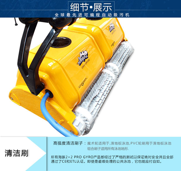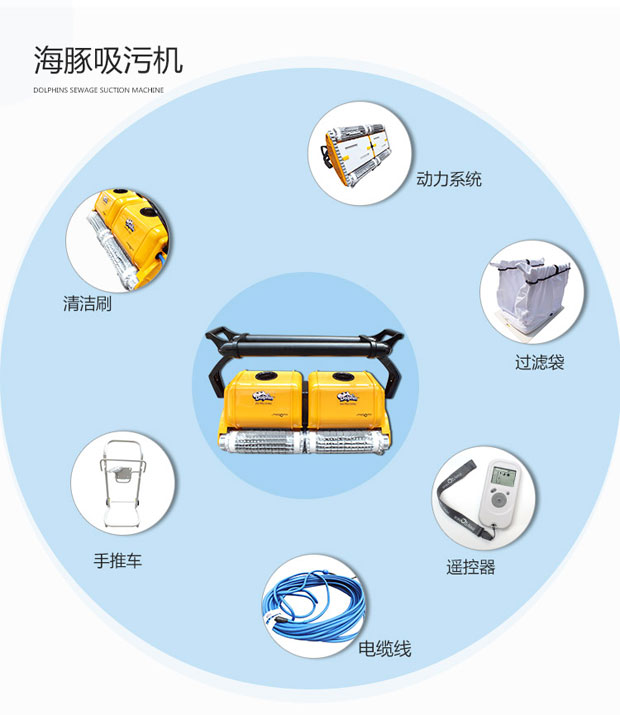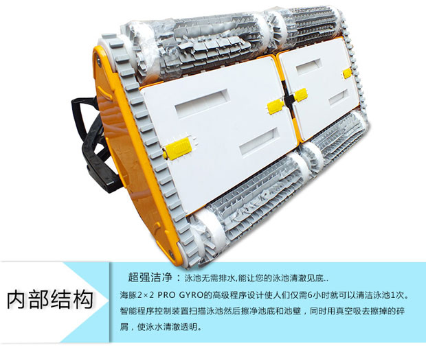 海豚2×2游泳池吸污機獨立操作,耗電量低,清掃、洗刷、過濾讓您的泳池清潔無后顧之憂,集新性能與改進(jìn)性能于一體,可完成擦洗、清掃、真空吸附及過濾工作,使你的泳池清澈見底。